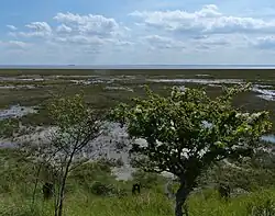 The expansion of the intertidal wetlands will add 75 hectares (190 acres) of wet grassland to the land north of Winestead Drain.[11] The section of the river that flows across the mudflats of the estuary is Known as Patrington Channel, which is also a name used for the river as far upstream as the old port at Patrington Haven.[12] The banks of the drain have been raised on either side of the river due to the risk of tidal flooding from the Humber Estuary, with most of the hinterland either side of Winestead Drain being below the normal spring tide level.[13]