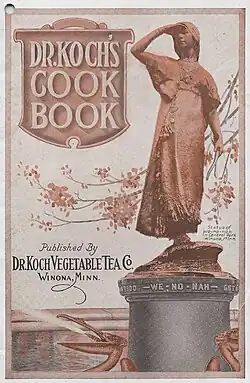 Winona, Minnesota is associated with the legend because it was formerly the site of Keoxa. The character of Winona has entered popular regional culture. The name has been featured in Watkins Incorporated advertising, a prominent statue (currently located by Huff St. between 5th and 6th Streets after being located in other city parks), a stained glass window, and elsewhere.