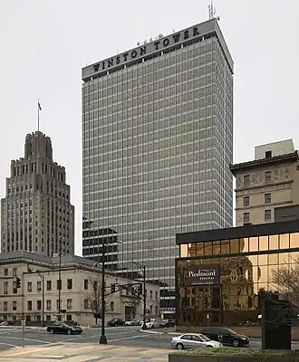 The Winston Tower (formerly Wachovia Building) is a 410 ft (125 m) tall skyscraper in Winston-Salem, Forsyth County, North Carolina, completed in 1966 with 29 floors. It was the tallest building in North Carolina, succeeding the Reynolds Building in Winston-Salem,[2] until it was passed by Charlotte's Jefferson First Union Tower in 1971.[3]