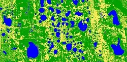 According to the United States Census Bureau, the city has a total area of 25.4 square miles (66 km2), of which 17.7 square miles (46 km2) is land and 7.7 square miles (20 km2) (30.45%) is water. Winter Haven is located within the Central Florida Highlands area of the Atlantic coastal plain with a terrain consisting of flatland interspersed with gently rolling hills.[23] It has an average elevation of 146 feet (45 m) above sea-level.[24] The city is located at the headwaters of the Peace River.[25]