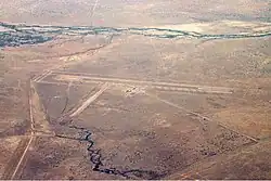 The airport is at an elevation of 638 ft (194 m) above sea level. It has two runways: 14/32 with an asphalt surface measuring 1,402 m × 30 m (4,600 ft × 98 ft) and 05/23 with a clay surface measuring 890 m × 18 m (2,920 ft × 59 ft).[1]