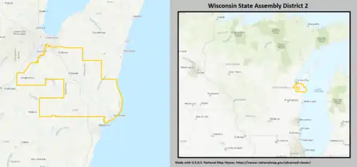 - ^ "Wisconsin Legislative Districts - Assembly District 2 Boundaries". Wisconsin Legislature. Retrieved February 7, 2021.