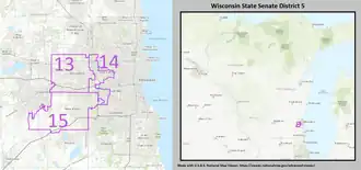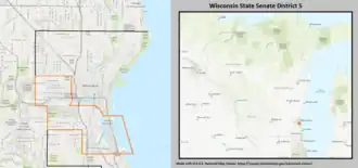 1. ^ "Senate District 5". Wisconsin Legislature. Retrieved March 6, 2021.