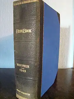 The Wisconsin Blue Book is a biennial publication of the Wisconsin's Legislative Reference Bureau. The Blue Book is an almanac containing information on the government, economics, demographics, geography and history of the state of Wisconsin. It was published annually from 1879 to 1883, and then biennially since 1885 to the present day. It is currently published in the fall of every odd-numbered year, corresponding to the start of each new biennium of the Wisconsin state government. Since 1995, the Blue Book has been available free in electronic form.[1]