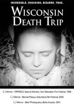 Wisconsin Death Trip was rejected for distribution by several European companies, who deemed it "morbid, distasteful and obsessed with the wrong aspects of human life", and the filmmakers' submission of it to the PBS series American Experience was met with no response.[17] The film screened at the Telluride Film Festival on September 5, 1999, where it was noted by a Los Angeles Times critic that it "left people shaken".[18] It subsequently was screened at the Venice International Film Festival the same year.[19] The film was released in New York City at the Film Forum on December 1, 1999.[14][20] In the United Kingdom, the film was presented on the BBC documentary series Arena in 2000.[21] The film was released on the U.S. pay television channel Cinemax on July 4, 2000.[14]