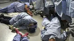 ![]() The physicians have fainted, due to a patient's toxic blood. | |