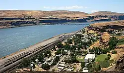 Wishram's location results from two major geological features: the location of the Celilo Falls on the Columbia River, and the access to the Central Oregon Plateau via the Deschutes River just across the falls from Wishram. The falls not only provided early peoples a reliable source of food, but it later provided a convenient location for an easily constructed railroad bridge crossing the Columbia. The Deschutes valley just to the south of the falls provided a route for rail access to the south, and ultimately to California.
