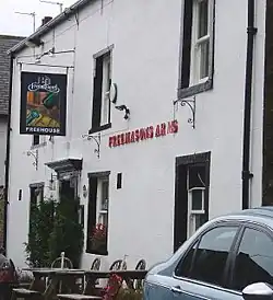 The property in which the current pub operates was not originally designed as a public house. It was formerly three small cottages one of which was a freemasons' lodge, which is how it acquired its name. The original village pub, the Lamb Inn, was located adjacent to the public phone box, but no longer exists and is now known as Clegg House, a residence on the corner of Coronation Gardens. The Lamb Inn closed over 150 years ago and Wiswell was without a pub for some time as the Freemasons did not open until considerably later on.