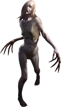 The Witch is a type of zombie in the Left 4 Dead games, which center around four survivors attempting to reach safety while fighting zombies.[1] She is thin with a "deadly" appearance,[2] gold/brown eyes,[3] and long, bloody claws.[4] Unlike most zombies in the game, the Witch is particularly powerful, though is usually passive, only attacking the player or their allies if disturbed.[5] They appear occasionally throughout a play session, and can be identified by the sound of crying and a musical sting associated with her.[3] This sting involves multiple elements, including "wailing moans and haunting, operatic screams" and "atrocious piano notes."[6][7] When approached, she becomes agitated,[8] and can also become agitated if light is shined on them or a loud sound is made near her.[3][6] They will eventually attempt to attack the player if agitated enough.[3] The Witch will run after the player that disturbed them; once her target is dead, she will attempt to flee.[9] When asked of the story of the Witch, Left 4 Dead writer Chet Faliszek responded that she is "singular with her obsession."[9]