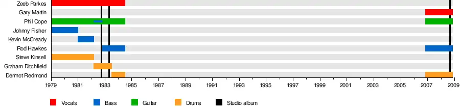 | Past members | Phil Cope Johnny Fisher Steve Kinsell Zeeb Parkes Kevin McCready Graham Ditchfield Rod Hawkes Dermot Redmond Gary Martin |