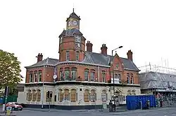 Withington was anciently a township and chapelry within the parish of Manchester[25] and hundred of Salford. In 1866 Withington became a separate civil parish. Following the Public Health Act 1875, Withington Town Hall was built in 1881 on Lapwing Lane, originally to house Withington Local Board of Health, then later occupied by the Withington Urban District Council, formed under the Local Government Act 1894. In 1904 the urban district was abolished[26] and Withington became part of the County Borough of Manchester.[3][4] The old Town Hall building has been converted into private apartments with new-build apartments to the south (back) and east (side). On 1 October 1933 the parish was abolished and merged with South Manchester.[27] In 1901 the parish had a population of 16,050.[28]