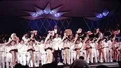 The centerpiece of The Minstrels was the Withrow Presentation Orchestra, a 60 piece, Paul Whiteman style (American Musicians II, pp 497–8) big band consisting of brass, woodwinds, strings, and percussion (drums, tympani, chimes, vibraphone). The orchestra performed renditions of Tin Pan Alley and other music to accompany students' vocal and dance performances. Staging featured sophisticated lighting and special effects. (Cincinnati Post, 7/17/85). Sets and lighting were constructed by students (Cincinnati Post, 7/17/85). Student performances included solos, production numbers with solo singers, solo dancers, ensemble singing, special effects, and a Rockettes style "pony chorus".[1] Each show ran almost three hours without intermission.