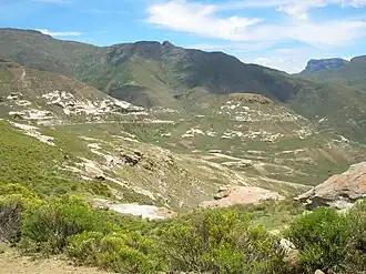 The Witteberg or Witteberge is a South African mountain range just off the south-west corner of Lesotho. The range, which rises to 2408 metres, stretches for about 60 km (37 mi) from Lundin's Neck in the east to Lady Grey in the west. The range lends its name to the Witteberg Series, the uppermost fossiliferous sequence of the Cape System of sedimentary rocks in South Africa.