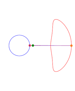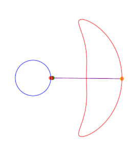 While the point A describes a circle, B describes a figure eight. Now we write this down as a proposition of kinematics.
