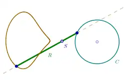 If B remains on the same side of S with respect to the center of the circle, instead of a ray one can consider just a segment or the rod AB.