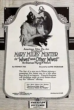 Wives and Other Wives is a 1918 American silent comedy-drama film directed by Lloyd Ingraham and starring Mary Miles Minter, based on a story by Jules Furthman. As with many of Minter's features, it is thought to be a lost film.[1]