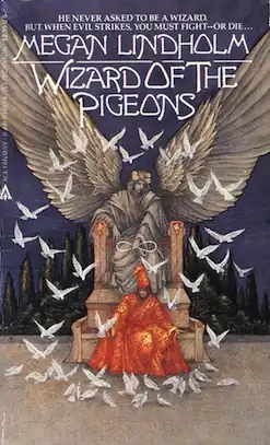 Wizard of the Pigeons is a 1986 fantasy novel set in Seattle by Megan Lindholm, and a forerunner of the urban fantasy genre. It was the first work to draw wider attention to Lindholm (who also writes as Robin Hobb). The novel explores themes of homelessness, poverty, and mental illness. It was issued as a paperback original by Ace Books in 1986, and was reprinted in hardcover by Hypatia Press in 1994 and as a 35th Anniversary Edition (illustrated by Tommy Arnold) by Grim Oak Press in 2020. Several UK editions have also been published.