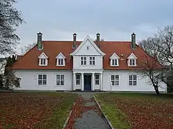 Stend Manor (Stend hovedgård) was a historic estate which had belonged to Nonneseter Abbey of Bergen during the Middle Ages. Around 1682, the main building was built in timber as a single-story with three wings. In 1842, Dr. Wollert Konow acquired Stend. In 1861, Stend was bought by Søndre Bergenhus (now Hordaland) county. Since then, it has housed an agricultural school. Under the direction of architect Erlend Tryti (1885-1962) extensive renovation and restoration work was carried out in the years 1921-1922. The main building were restored in the late 1980s and early 1990s. [10] [11]