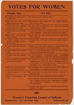 - ^ a b c "Women's Franchise League of Indiana". Records. 1914 – via Indianapolis Historical Society.