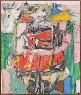 Woman VI is a 1953 abstract work of art painted by Willem de Kooning and first displayed at the Sidney Janis Gallery in Manhattan.[1] Since the 1955 Carnegie International Exhibition,[2] Woman VI has been on view at the Carnegie Museum of Art as part of the Postwar Abstraction collection. The Woman paintings of the early 1950s are widely considered to be de Kooning’s most important works for their significance to postwar American cultural history and social events, such as the mid-century Feminist Movements. Many of the paintings are speculated to be abstracted portraits of Marilyn Monroe. Woman VI is notable within the series for its brighter palette of green and red paint employed in larger fields of color.
