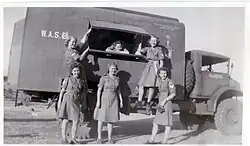 The unit moved through Burma with the British Fourteenth Army running mobile canteens providing "char & wads",[5][6] living in dangerous and uncomfortable conditions, sleeping in bombed out, rat infested houses or tents with their stores and equipment brought in by air.[7] They improvised stoves from old ammunition boxes. They were evacuated from Myitkyina on the last plane, and from the Battle of Imphal during the siege, but returned as soon as the Japanese retreated, eventually reaching Japan with the British Commonwealth Occupation Force.