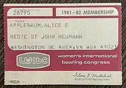 Formerly called | Woman's National Bowling Association (WNBA) |