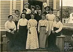 The United States Congress passed a law in 1904, giving all adult citizens in Alaska the right to vote and women the right to vote in school board elections.[1][2] Early white women's rights activists were active in the Women's Christian Temperance Union (WCTU) in Territorial Alaska.[3] The Skagway, Alaska WCTU was very active in their own community.[4] Members of the Alaska WCTU eventually felt that to pass successful temperance efforts meant they would need the right to vote.[5] Liquor licenses were voted on and issued on an annual basis in Territorial Alaska since 1908.[6]