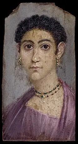 The legal status of women in Roman Egypt depended on their social background and citizenship. Roman women in Egypt followed Augustan laws that encouraged marriage and childbirth, promoting family growth. Roman women in the province were legally and socially subordinate to men, subject to Augustan laws promoting marriage and childbirth, reinforcing their roles as wives and mothers in line with Roman family ideals. Egyptian women had traditionally enjoyed more legal independence under earlier Pharaonic and Ptolemaic systems. However, under Roman rule, they were increasingly required to follow Greek customs that mandated the presence of a male guardian (kyrios)—a father, husband, or male relative—for major transactions. While Ptolemaic Egypt had recognized both Demotic and Greek contracts, Roman authorities discouraged Demotic language use, making Greek written contracts dominant by the end of the first century CE.[9][10] In 212 CE, the Constitutio Antoniniana granted Roman citizenship to all free inhabitants of the empire, including Egypt. This extended Roman legal norms to many local women. Compared to Greek law, Roman law was somewhat less restrictive: it required male authorization for fewer transactions. Additionally, the Jus trium liberorum granted legal independence to women who had borne three or more children.[9]