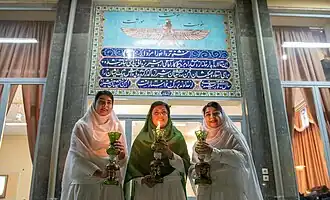 There are no lay rituals in Zoroastrianism that are exclusive to men and women tend to be more active in daily religious observance.[21] Some lay rituals are exclusively performed by women and the annual "pilgrimage" cycle for Zoroastrians in Iran includes a particular round for women, who visit specific shrines where rituals are women-led and women-oriented.[21] As of 2008, some villages in Iran employ post-menopausal women as "guardians" of Zoroastrian shrines.[21]