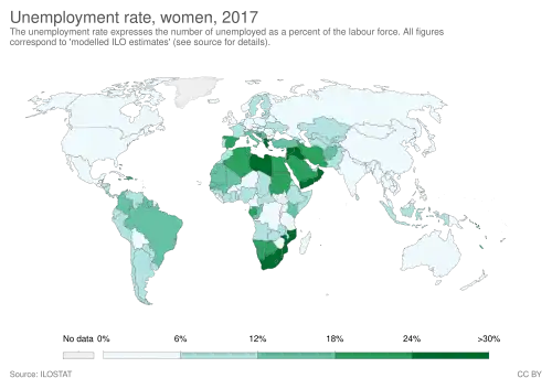 The increasing rates of women contributing in the work force has led to a more equal disbursement of hours worked across the regions of the world.[4] However, in western European countries the nature of women's employment participation remains markedly different from that of men.
