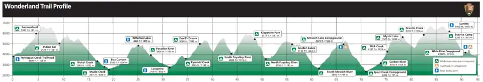 - ^ a b "Wonderland Trail Profile". National Park Service. Retrieved September 13, 2016.