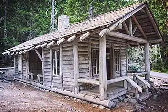 The White River Patrol Cabin was built in 1927 by the National Park Service at the White River Campground in Mount Rainier National Park, as the White River Campground Ranger Station. The rustic cabin functioned as a patrol cabin because of its location on the Wonderland Trail. Construction is post and beam frame with log roof framing. The three-room cabin was remodeled in 1949.[8] The cabin was placed on the National Register of Historic Places on March 13, 1991.[1]