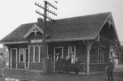 The Chelsea Beach Branch, which operated only during the summer, ended operations in 1891, although the rails remained in place until the 1920s.[6][7] In April 1897, the BRB&L was moved inland onto the modern right-of-way next to the abandoned Chelsea Beach Branch.[8] A new station, Bath House, was soon built on the east side of the tracks across from the new Revere Beach Bath House, just north of the modern station site.[9] By 1928 the line was electrified, with pre-pay stations - more a rapid transit line than a conventional railroad.[10] However, due to the Great Depression, the BRB&L shut down on January 27, 1940.[6]