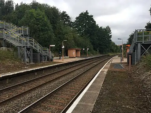 In 2014, the footbridge over the line was removed and new stairs were installed leading to both platforms from the main road.