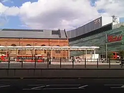 The Central London Railway (CLR, now the Central line) opened Wood Lane station in 1908 on the north side of its Wood Lane depot to serve the exhibition. Originally intended to be a temporary service it survived until 1947 when it was replaced by White City station a short distance to the north.