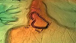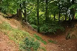 The fort is situated on a high point of Woodbury Common, at approximately 185 metres (607 ft) above sea level, in a commanding position with views up and down the Exe Estuary and across Lyme Bay in both directions. The structure is a prehistoric military type of earthwork.[1]