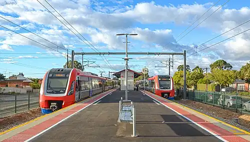 Woodlands Park railway station is the junction station for the Seaford and Flinders lines.[1] Situated in the inner south-western Adelaide suburb of Edwardstown, it is 9.1 kilometres from Adelaide station.