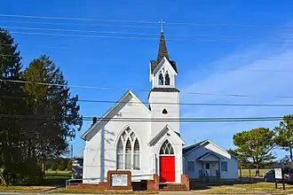 Woodside Methodist Episcopal Church, also known as Woodside United Methodist Church, is a historic Methodist church located on Main Street, and North Murderkill Hundred in Woodside, Kent County, Delaware. It was built in 1889, and is a rectangular frame building in the Late Gothic Revival style. It measures 50 feet, 4 inches, deep by 30 feet, 6 inches wide. It has a steeply pitched gable roof and features a bell tower capped with a steepled, square belfry.[2]