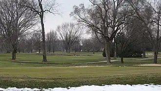 Woodstock Country Club is a historic country club and national historic district located at Indianapolis, Indiana. It was developed between 1923 and 1956 and includes the 1923 Colonial Revival clubhouse expanded in 1957 and 1988. It consists of a central block with flanking wings and a three-arch porte cochere. Also on the property are the contributing main swimming pool (1927, 1996) and upper and lower tennis courts (c. 1900, c. 1922). The golf course was originally designed in 1899 and reconstructed in 1927-1928 by Bill Diddel.[2]