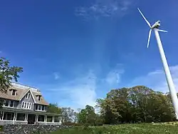 The Center's Gilman Ordway Campus, located on Cape Cod in the town of Falmouth, was completed in 2003. The 19,300 sq ft (1,790 m2) building is composed of a renovated summer estate (ca. 1877) and a new wing. The campus is energy neutral, with renewable power generated by a 100 kW wind turbine, as well as rooftop photo-voltaic power systems.[11]