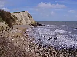 Woody Bay is a small bay on the south coast of the Isle of Wight, England. It lies along the coastline beneath the village of St. Lawrence. The bay faces south towards the English Channel, its shoreline is 260 yards (240 m) in length.[1]