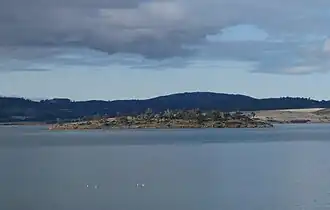 Woody Island is a small, uninhabited island lying in Pitt Water, Tasmania, Australia. It is part of the Sloping Island Group, lying close to the south-eastern coast of Tasmania around the Tasman and Forestier Peninsulas.[1] The island is approximately 28.3 hectares in size, with cliffs of up to 15 metres in height.[2] The island is a popular boating and recreation site.