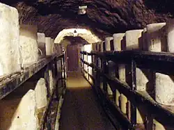 The constant temperature of 11 °C (52 °F) in the caves is used by Ford Farm of Dorset to mature Cheddar cheese in the 'Cheese Tunnel' – an excavated side tunnel between the ninth chamber and the exit to the show cave.[32][33]