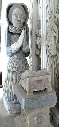 - Son and heir, who married Elizabeth Rolle, a daughter of George Rolle (c. 1486 – 1552) of Stevenstone, near Great Torrington in Devon,[6] the founder of the wealthy, influential and widespread Rolle family of Devon. Elizabeth Rolle survived her husband and married secondly, as his first wife, to Sir John Acland (died 1620) of Columb John, Broadclyst, Devon, but produced no surviving children. A small kneeling figure representing Elizabeth Rolle survives on the monument with effigy to her 2nd husband in St John's Church, Broadclyst.