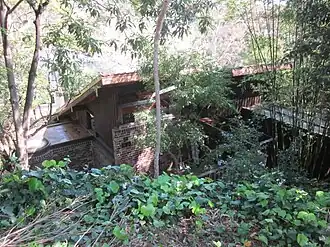 The stone retaining walls in the steep and undulating garden were laid by landscape architect Bruce McKenzie who also did some planting. McKenzie was a pioneer among early landscape practitioners of what would become known as the Sydney school, seeking to enhance Sydney's bush, bring it into gardens or bolster its condition in new development. He would go on to many large public jobs such as the UTS Lindfield / Ku-Ring-Gai campus (former Lindfield TAFE), Botany Bay Foreshore Reserve and others. Examples of McKenzie's private garden work are rare.[1][2]