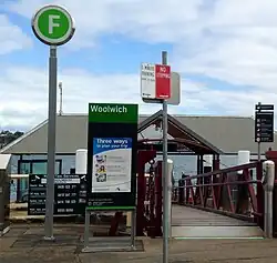 Woolwich ferry wharf (also known as Valentia Street ferry wharf) is located on Sydney Harbour serving the Hunters Hill suburb of Woolwich. It served by Sydney Ferries Cockatoo Island services operating between Circular Quay and Cockatoo Island.[1] The single wharf is served by First Fleet and Emerald class ferries.