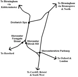 | Worcester Shrub Hill | Great Western Railway Hereford – London Paddington |