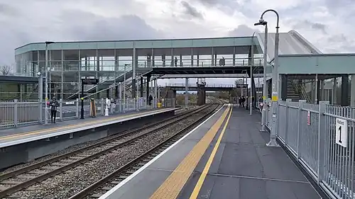 Worcestershire Parkway is a split-level railway station where the Cotswold and Cross Country lines cross near Norton, Worcester, England.[2] It opened on 23 February 2020.[3][4]
