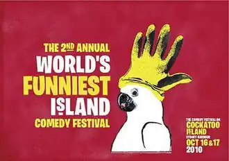 World's Funniest Island was an Australian comedy event held on the third weekend in October on Cockatoo Island, in Sydney Harbour. The first World's Funniest Island event took place 17–18 October 2009. It consisted of approximately 200 shows and involving over 250 performers in 12 indoor venues, and three outdoor stages, playing to 12,000 punters.
