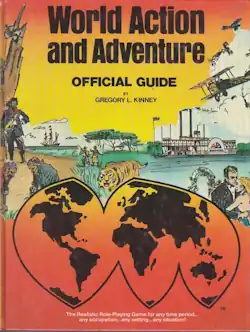 World Action and Adventure was designed by Gregory L. Kinney as a college project that earned him five course credits.[2] It was play-tested by friends and relatives including his grandparents,[2] and published by the M.S. Kinney Corporation in 1985 as a boxed set containing a 160-page hardcover book, a cardstock screen, a packet of blank forms, a small pad of character sheets, and dice.[1] Several supplements were published the same year including Book of Animals and Geography (1985) and Actor's Book of Characters. Ads that appeared in games magazines that year offered a reward of $50 to the first 100 players who sent in the description of a scenario that had been designed and played by at least four players using at least ten tables or charts during play.[3]